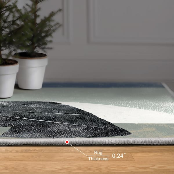8'x10' Abstract Washable Abstract Art Area Rug, Gray Blue Black Power-loomed, Heavenly Softness with Non-Slipping Back