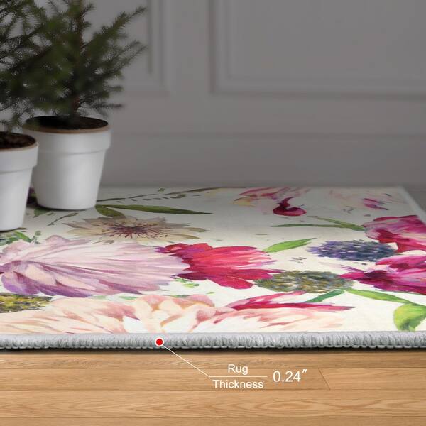 Amoroso A, 8'x10' Hand Washable Flowers Art Area Rug, power-loomed, 100% polyester, 2mm pile & non-slipping back.