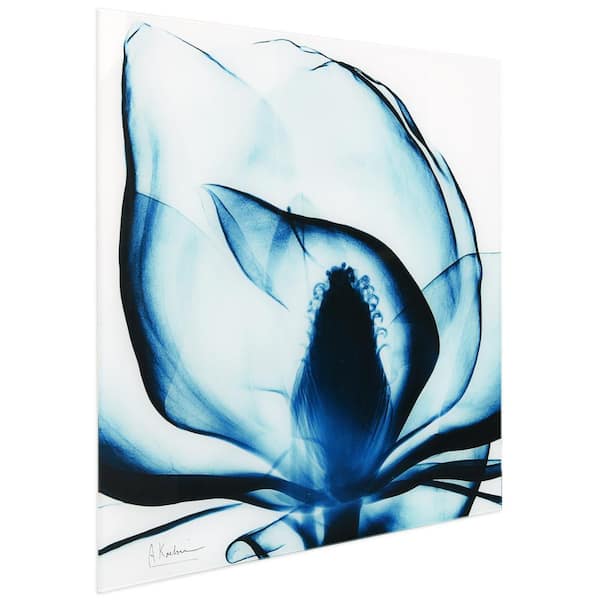 "Blue Magnolia X-Ray" Frameless Free Floating Tempered Glass Panel Graphic Wall Art