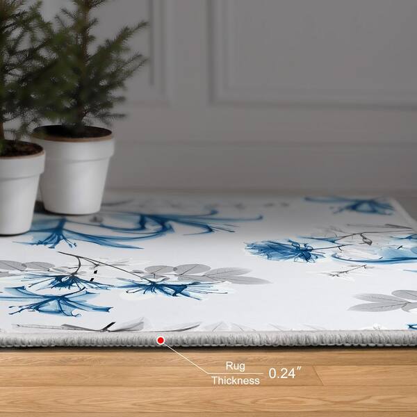 Blue and White 8 ft. x 10 ft. Beautiful Success I Washable Flowers Art Felt Area Rug