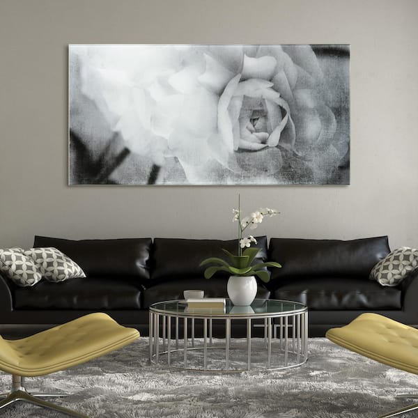 "Dark Ranunculus I A" Frameless Free Floating Reverse Printed Tempered Art Glass Wall Art, 72 in. x 36 in.