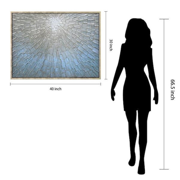 Ethereal Light Textured Metallic Hand Painted Blue Framed Canvas Wall Art, 30 in. x 40 in.