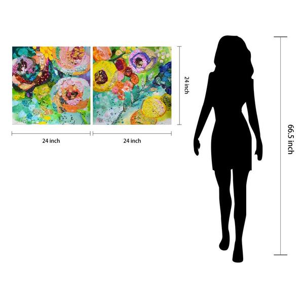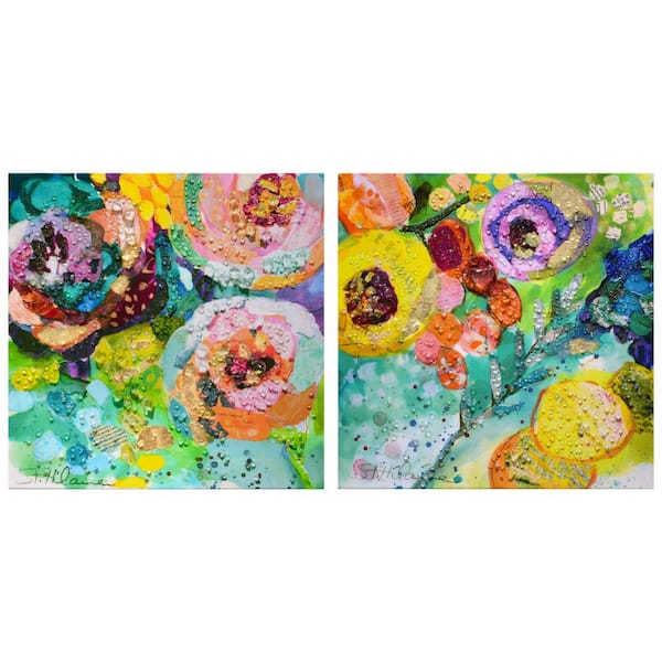 Floral Radiance I and II Crystallus Epoxy Coated Wrapped Glossy Canvas Unframed Wall Art, 24 in. x 24 in.