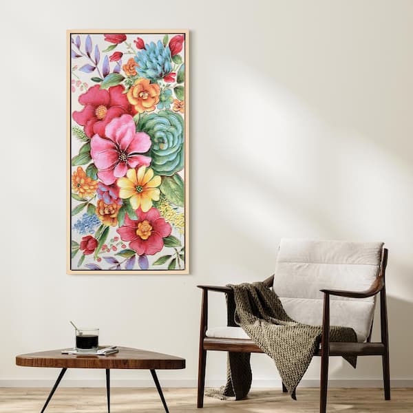Floral Symphony Heavily Textured Hand Painted Framed Canvas Wall Art, 24 in. x 48 in.