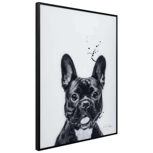 "French Bulldog" Black and White Pet Paintings on Printed Glass Encased with a Gunmetal Anodized Frame