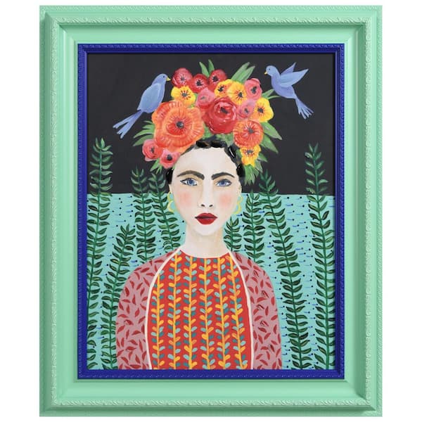 Frida Headdress Chromatic Hand Painted Embellished Giclee Portrait Canvas Wall Art w/ Baroque 2-Tone Frame 20 x 24 in.