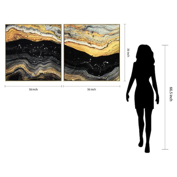 "Golden"Crystallus Epoxy Coated Framed Glossy Abstract Canvas Wall Art Sets with Acrylic Crystal Shards, 36 in. x 36 in.