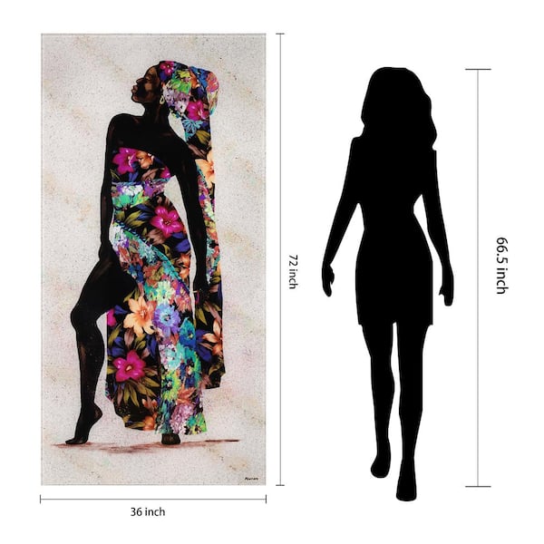 Her Beauty I in Woman Unframed Reverse Printed Tempered Art Glass Wall Art, 72 in. x 36 in.