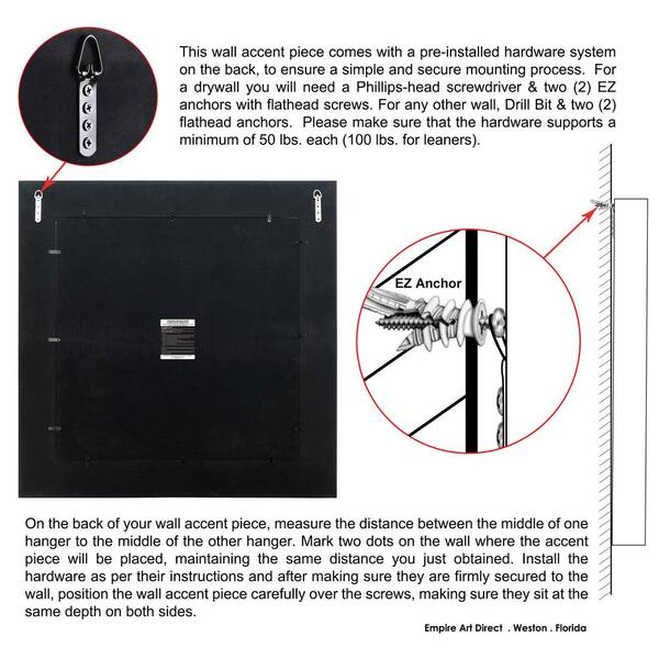Large Square Black Hooks Modern Mirror (48 in. H x 48 in. W)