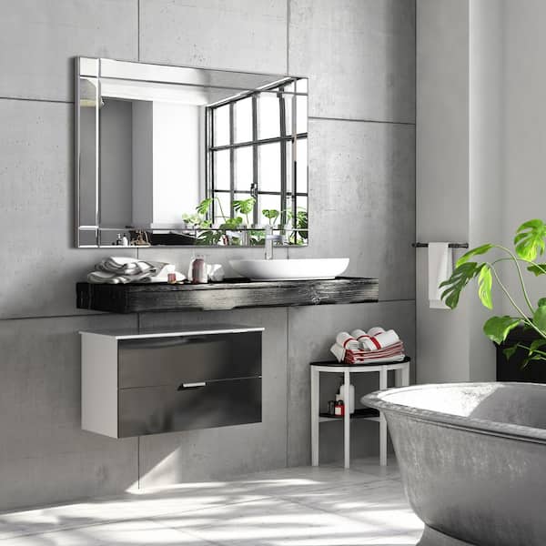 Medium Rectangle Clear Beveled Glass Contemporary Mirror (40 in. H x 30 in. W x 1.3 in. D)
