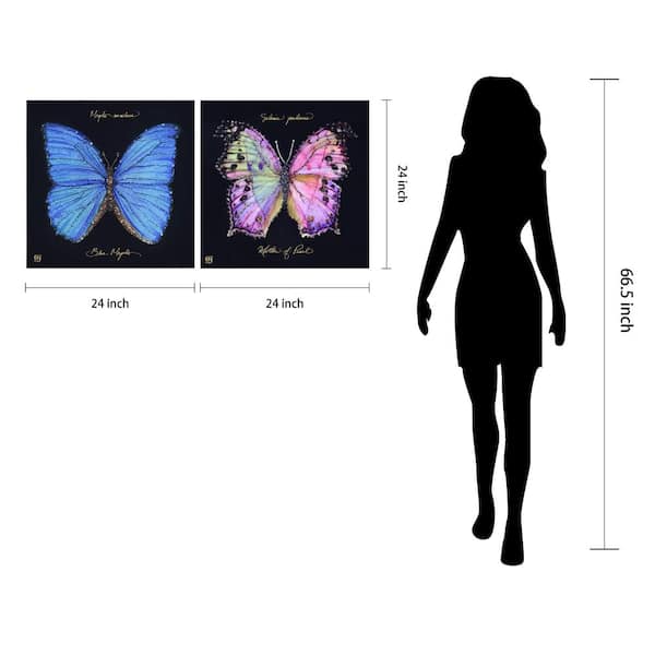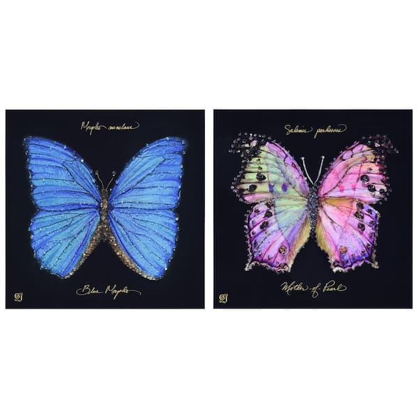 Monarch Elegance Set Crystallus Epoxy Coated Wrapped Glossy Butterfly Canvas Unframed Wall Art, 24 in. x 24 in.