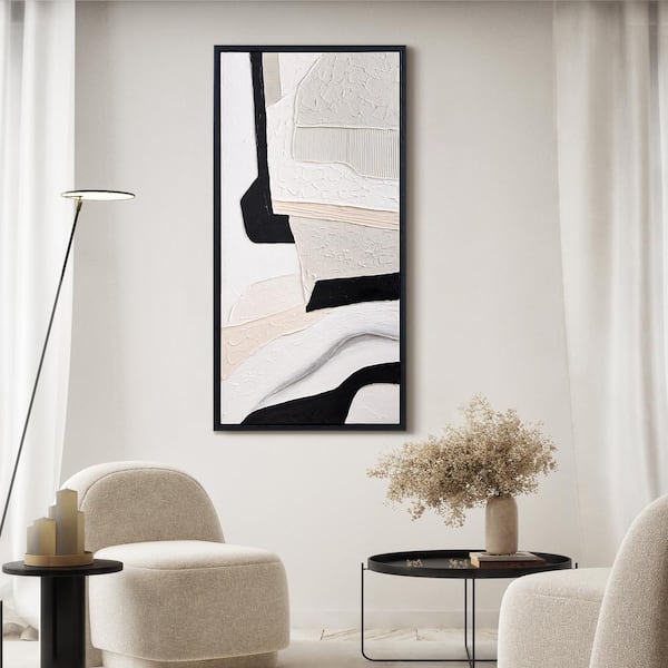 Monochrome Abstract Heavily Textured Hand Painted Framed Canvas Wall Art, 24 in. x 48 in.