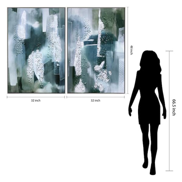 "Silver Mist" Crystallus Epoxy Coated Framed Glossy Canvas Wall Art Sets with Acrylic Crystal Shards, 32 in. x 48 in.