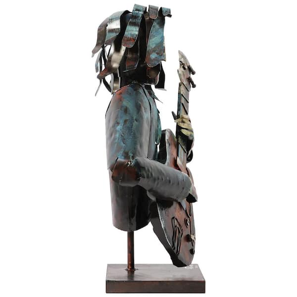 "The Bassist" Mixed Media Inregular Iron Hand-Pinted Colorful Art Sculpture