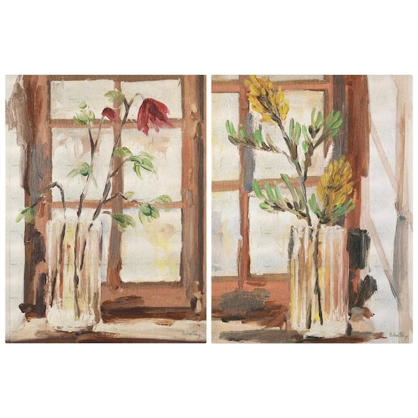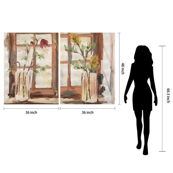 "Timeless Serenity I & II" Vase by the Window on Gold Metallic Shagreen Wrapped Canvas Wall Art Set, each sized 48"x72"