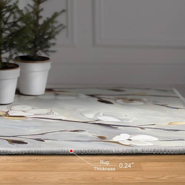 White 8 ft. x 10 ft. Blossoming Up II Washable Flowers Art Powerloomed Heavenly Softness NonSlipping Backing Area Rug