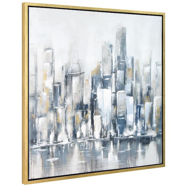 "Winter Cityscape" by Martin Edwards Framed Textured Metallic Abstract Hand Painted Wall Art 36 in. x 36 in.