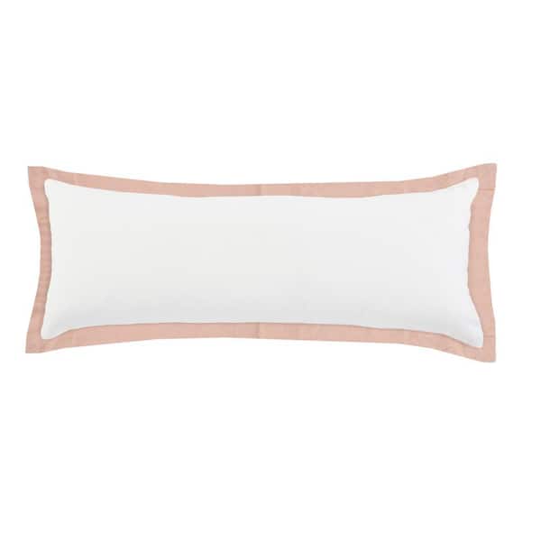 Empire White /Light Pink Border Soft Poly-Fill 14 in. x 36 in. Indoor Throw Pillow