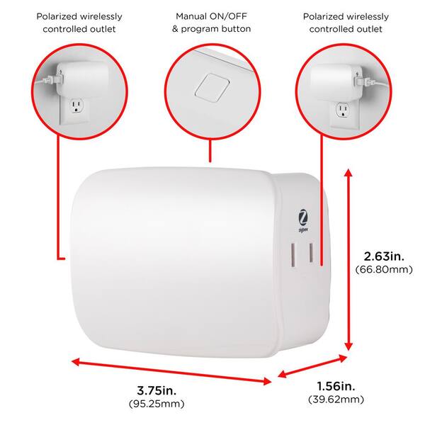 Zigbee 120-Volts Smart Dimmer Dual Controlled Plug-In, White