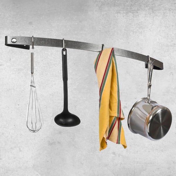 Handcrafted 30 in. Hammered Steel Curved Wall Rack Utensil Bar with 6-Hooks