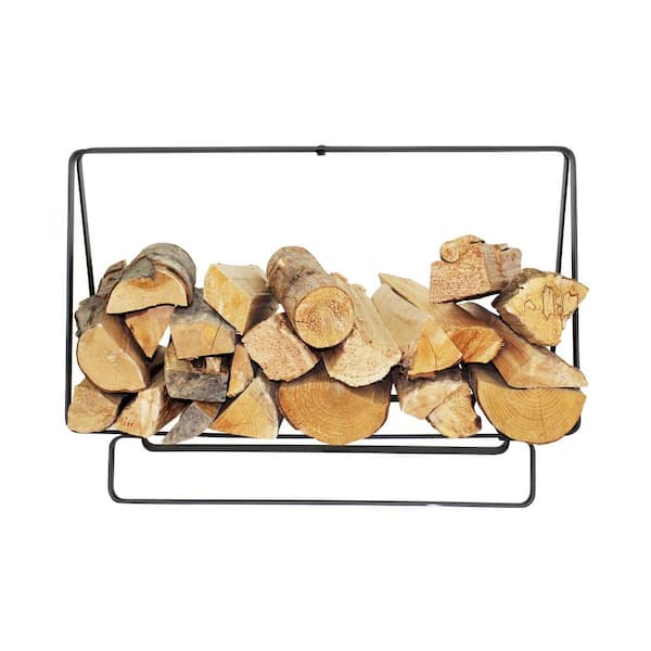 Handcrafted Medium Rectangular Firewood Rack with Handle Hammered Steel