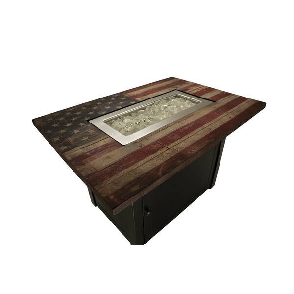 40 in. x 28 in. Outdoor Rectangular Steel Frame LP Gas Fire Pit in Flag Print with Electronic Ignition and Cover