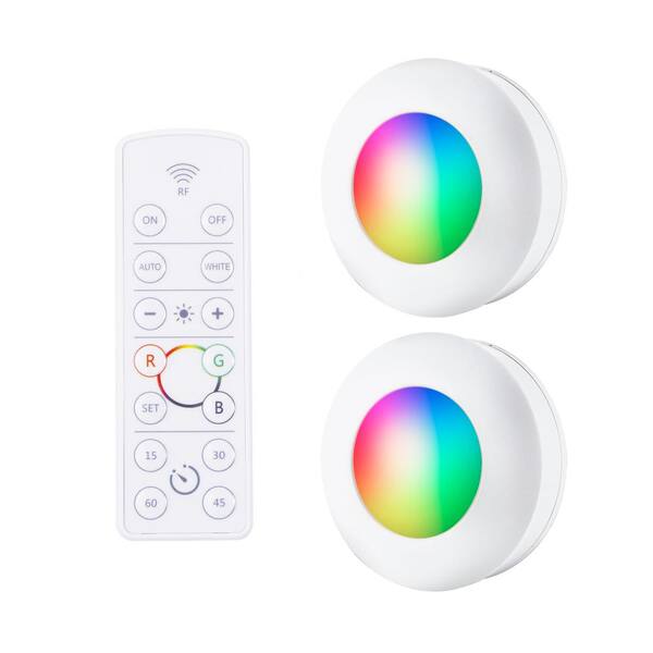 Battery Operated LED Color-Changing Puck Lights with Remote (2-Pack)
