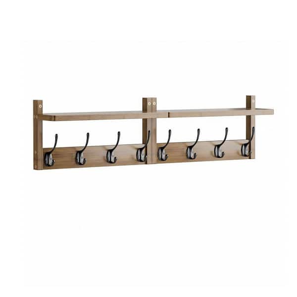Entryway Walnut Bamboo Wall Mount Coat Rack