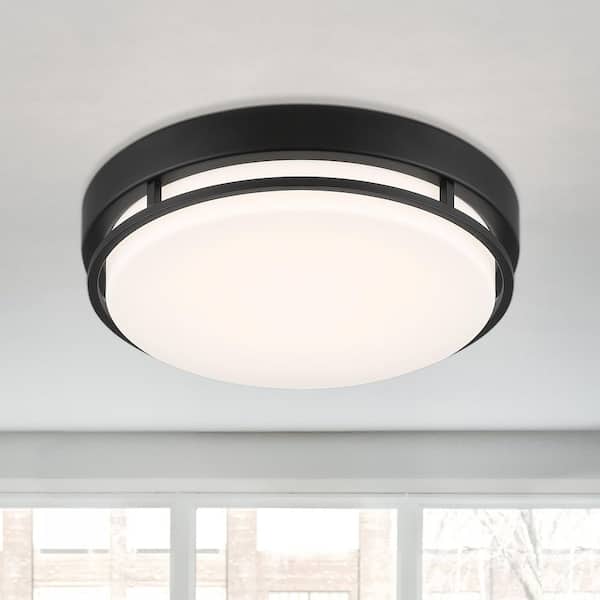 Noble 10 in. Contemporary Matte Black Selectable CCT Integrated LED Flush Mount for Kitchens