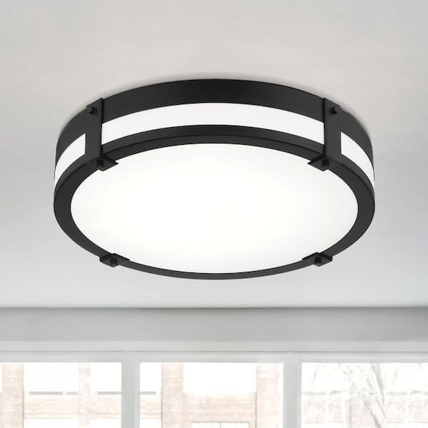 Winslow 18 in. Minimalist Aged Iron Selectable CCT Integrated LED Flush Mount for Kitchens