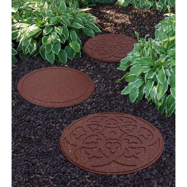 Reversible Scroll 18 in. x 18 in. Terra Cotta Round Rubber Stepping Stone