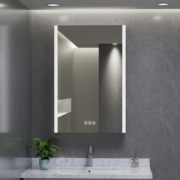 Eos 12 in. W x 24 in. H Rectangular Aluminum Surface/Recessed Medicine Cabinet with Mirror and Light, Left Hinge