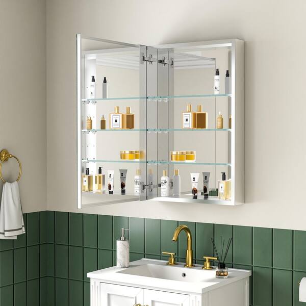 20 in. W x 30 in. H Rectangular Aluminum Recessed/Surface Mount Medicine Cabinet with Mirror, Soft Close, Left Open