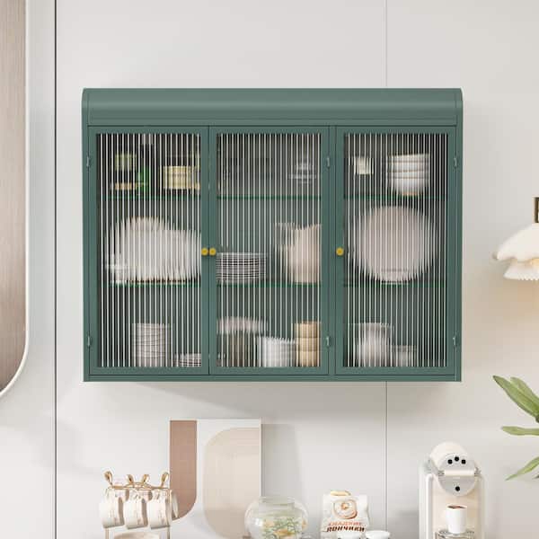 35.5 in. W x 7.9 in. D x 27.6 in. H 3 Door Arched Bathroom Storage Wall Cabinet in Dark Green