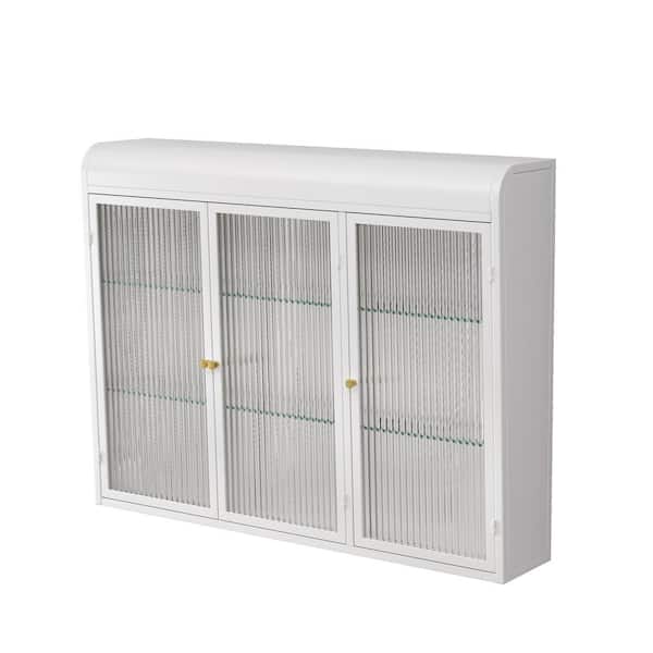 35.5 in. W x 7.9 in. D x 27.6 in. H 3 Door Arched Bathroom Storage Wall Cabinet in White