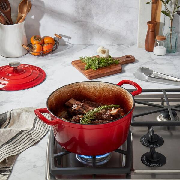 6 qt. Round Cast Iron Dutch Oven in Red with Lid (1-Pack)