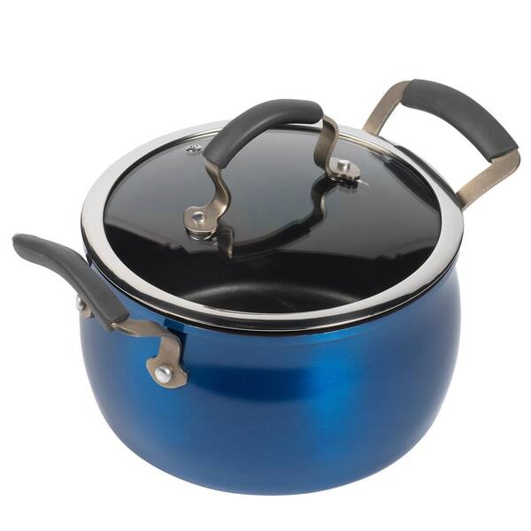 Translucent 4 qt. Hard-Anodized Aluminum Nonstick Soup Pot in Blue with Glass Lid