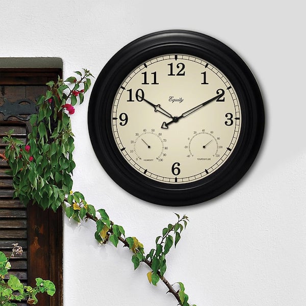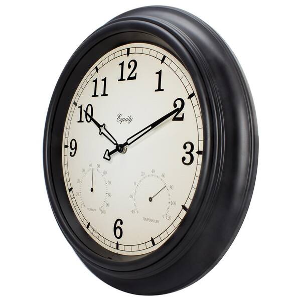 15-1/2 in. In/Outdoor Black Wall Clock with Thermometer and Hygrometer