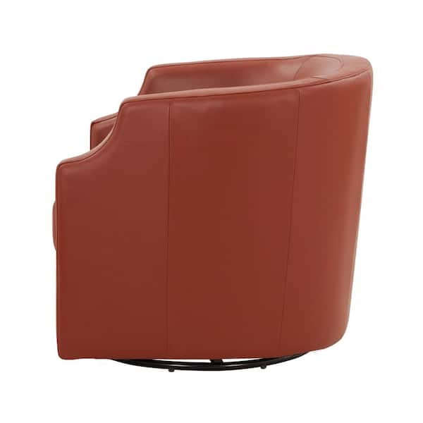 Erenson Caramel Top Grain Leather Swivel Glider Barrel Chair