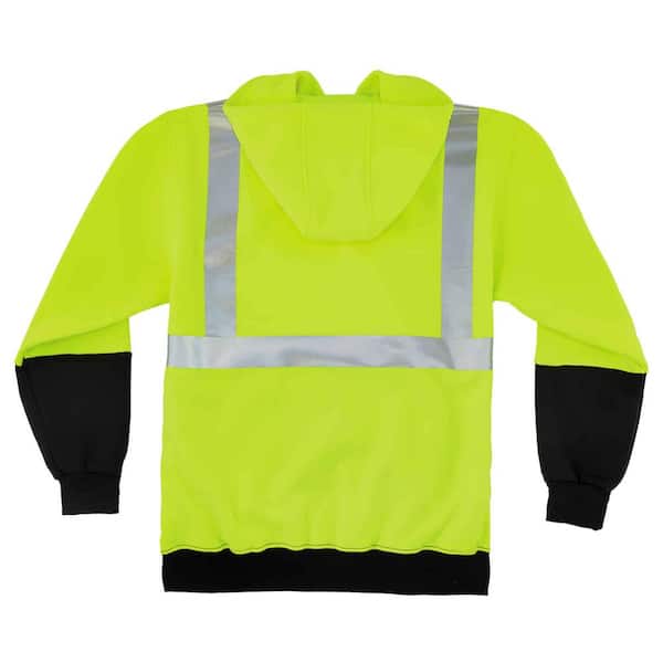 Large Hi Vis Lime Black Front Hooded Sweatshirt