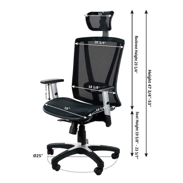 53 in Tall Green Ergonomic Adjustable Office Chair with Fabric Seat, Headrest, Lumbar Support, and Armrests