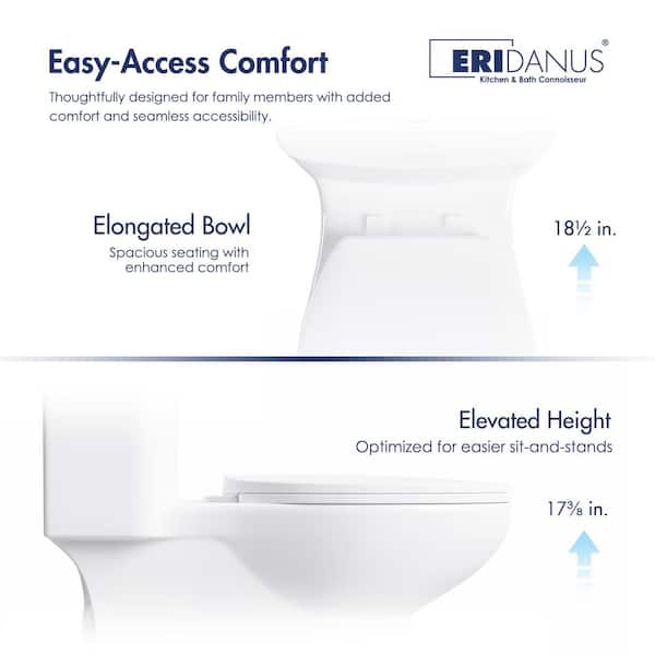 Dublin 1-Piece Toilet 1.1/1.6 GPF Dual Flush Elongated Chair Height in White, 12 in. Rough-In