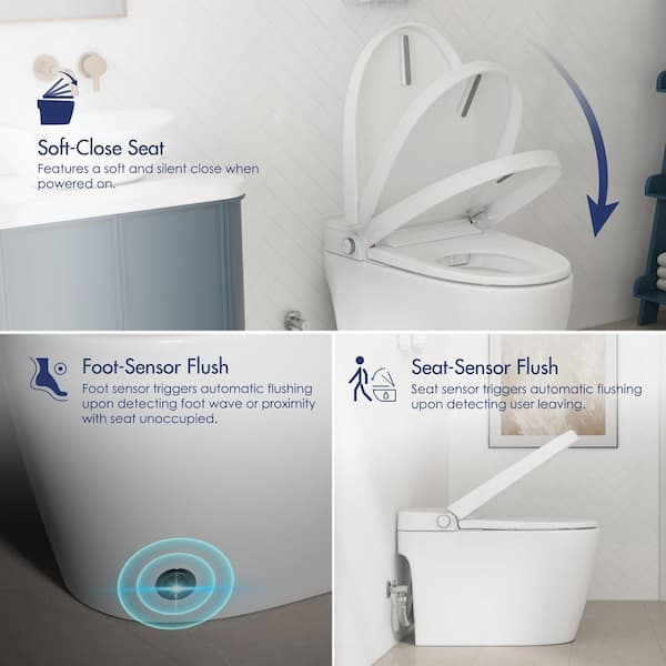 Piedmont 1-Piece 1.28 GPF Elongated Toilet in White with Auto Flush, Heated Seat and Night Light