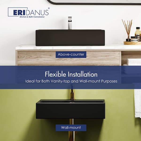 Turner 24 in. L x 16.5 in. W x 5.75 in. D Vitreous China Wall-Mount/Vessel Sink with Faucet Hole in Matte Black