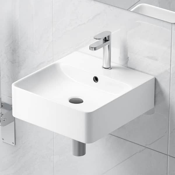 Turner Crisp White Vitreous China 16 in. Square Wall-Mount Vessel Sink with Faucet Hole and Overflow