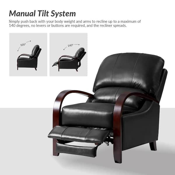 Ernesto Black Genuine Leather with The Wooden Armrest Recliner