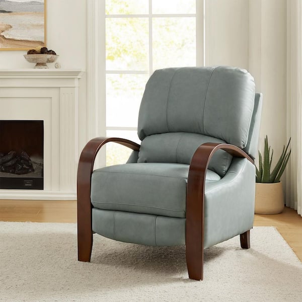 Ernesto Grey Genuine Leather with The Wooden Armrest Recliner