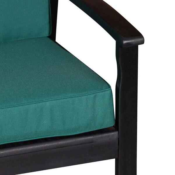 Espresso Finish Eucalyptus Wood Outdoor Loveseat, with Dark Green Cushions, for Garden Patio