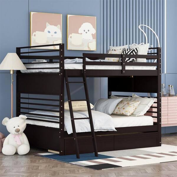 Espresso Full over Full Wood Bunk Bed with 2 Drawers