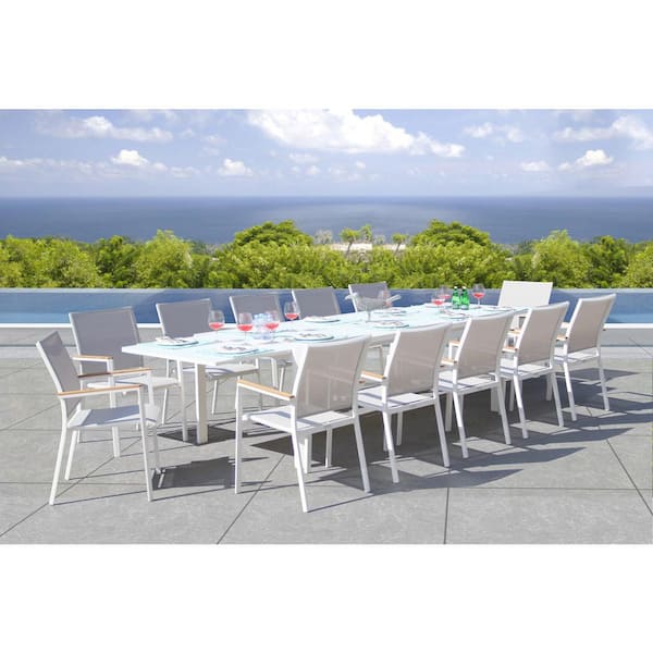 Essence.G White 13-Piece Aluminum Outdoor Dining Set with Sling Set in Mouse Grey
